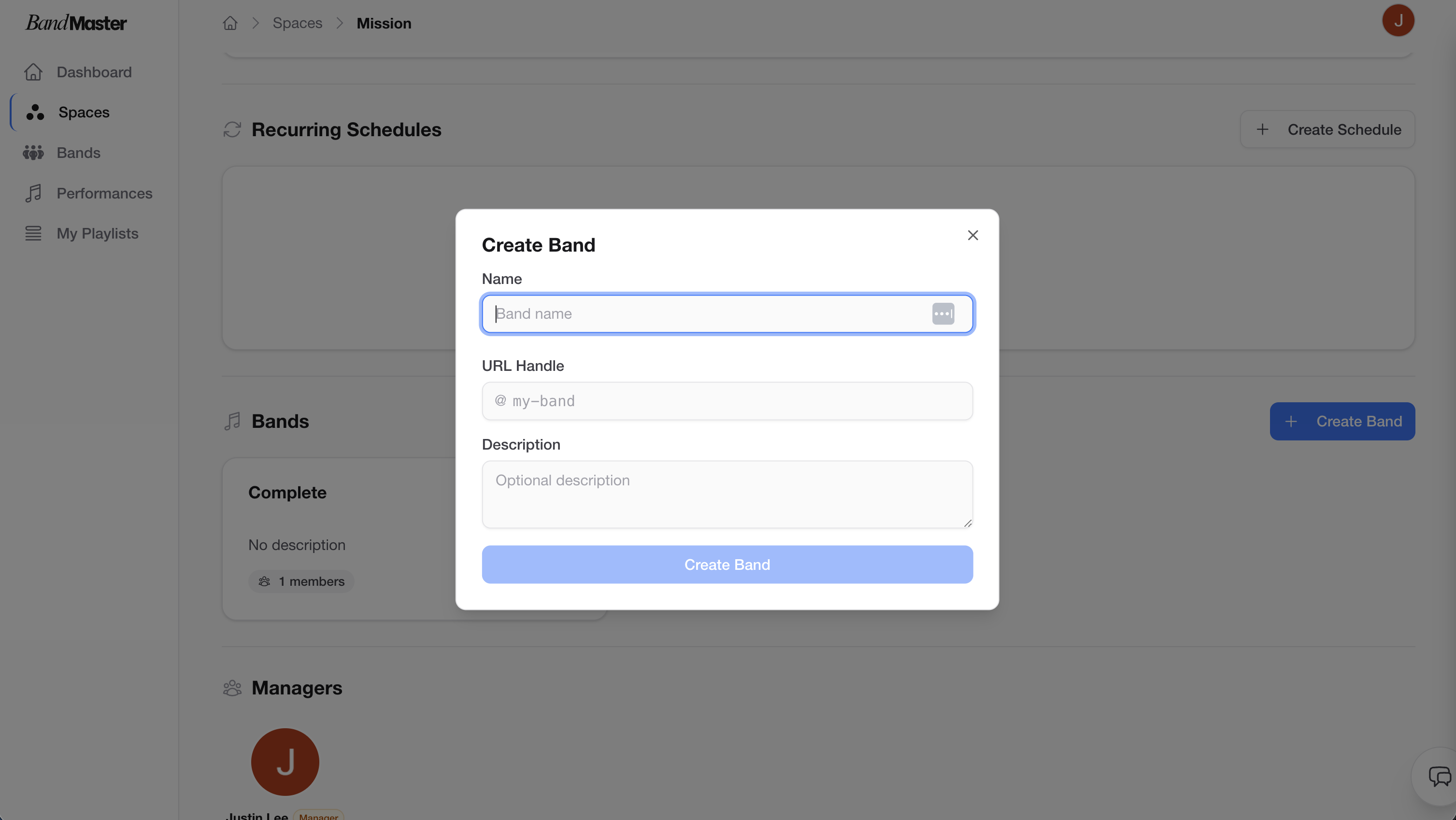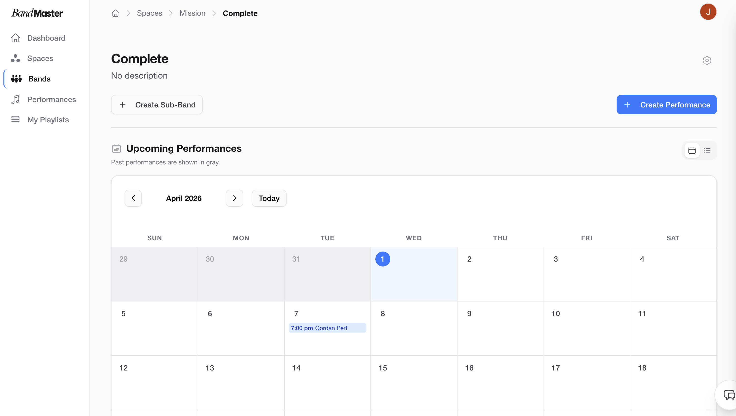 A Band is a group within a Space that has its own members and performances. Bands let you organize ensembles, sections, or any performing group under one Space, each with independent rosters, schedules, and settings.