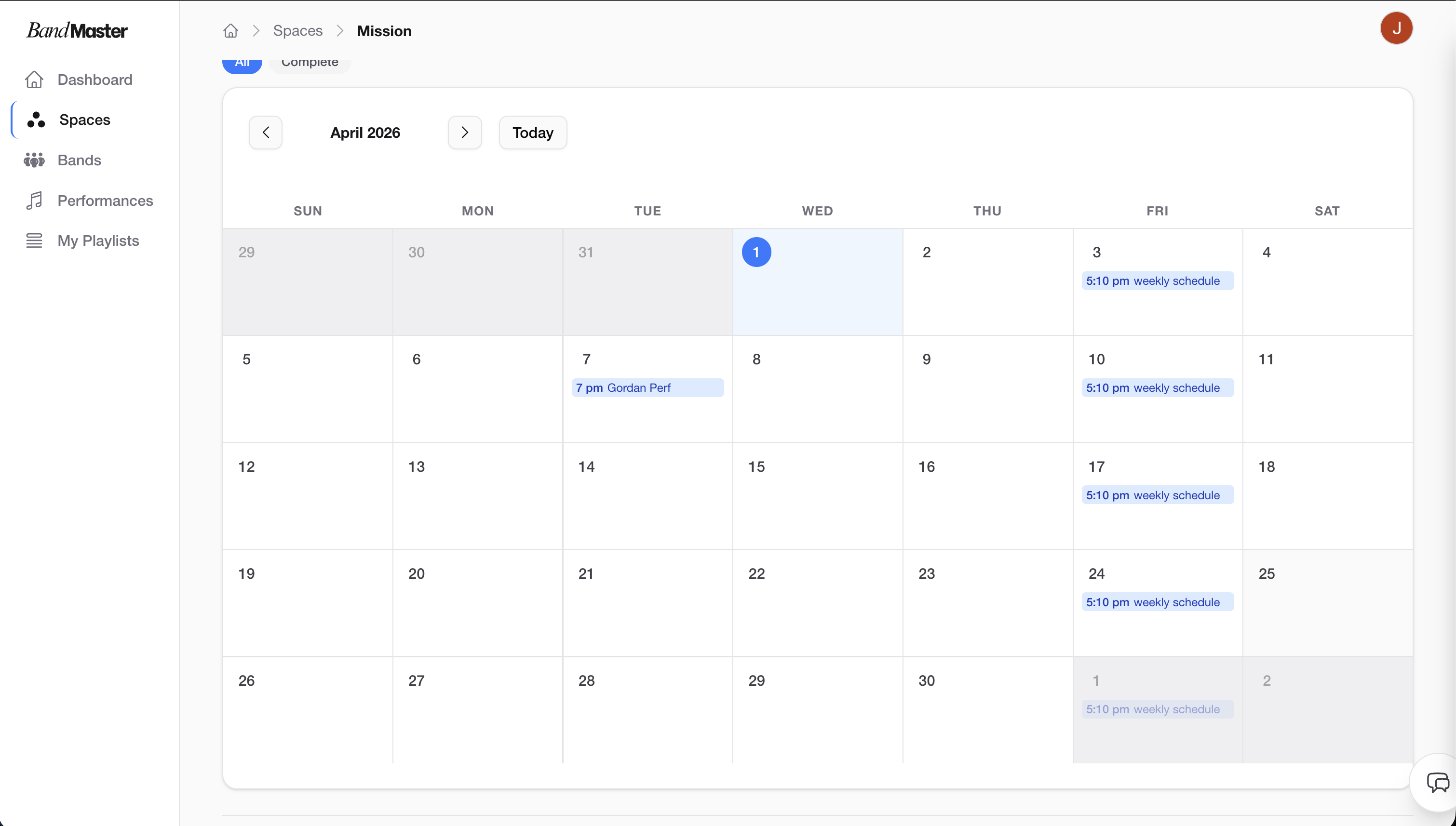 Click Save. Bandmaster will immediately generate all the individual performances for the dates defined by your schedule. You'll see them appear on the calendar and in your Space's performance list.
