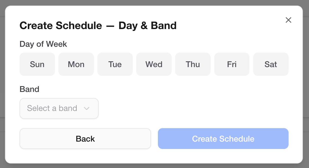 Choose which band this schedule belongs to. All generated performances will be associated with that band.