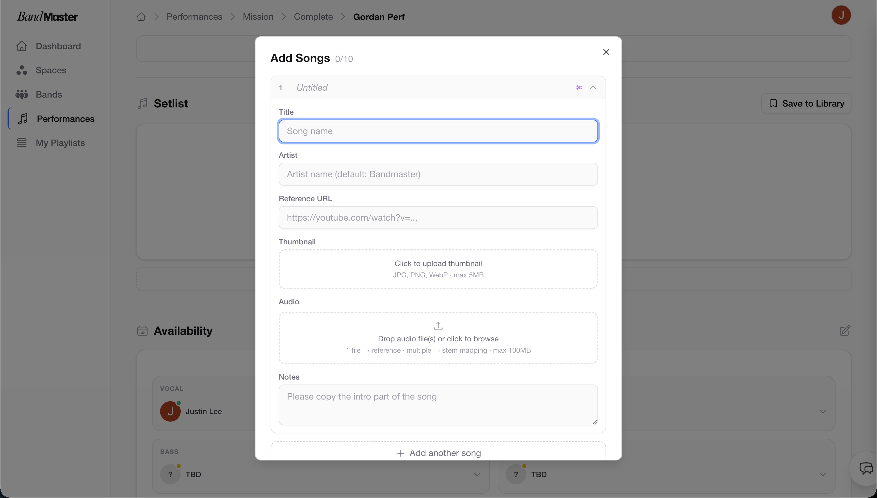 - Click "+ Add Song".