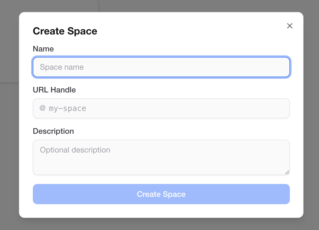 Tip: The Space name becomes its URL slug. Choose a clear, recognizable name so members can easily identify it.